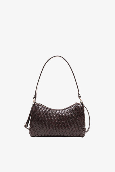 A small shoulder bag with a stylish woven design that is both practical and elegant. It features two detachable straps: a shorter one for shoulder or hand carry, and a longer adjustable strap for wearing cross-body. Both straps attach easily to the metal rings on the bag, allowing you to switch up your style effortlessly. Inside, there are three compartments, a zippered pocket, and an extra slot for small essentials.