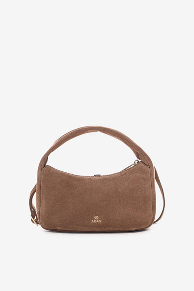 Elegant shoulder bag in soft suede with a short handle. The bag features a main compartment with zipper, ideal for evenings out or simple everyday use. It includes a detachable and adjustable shoulder strap, allowing it to be worn as a crossbody.