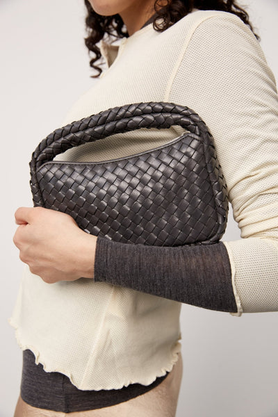 A small handbag with a beautiful woven design. It features a main compartment with zipper, ideal for evenings out or simple everyday use. The bag includes a detachable and adjustable shoulder strap, allowing it to be worn as a crossbody.