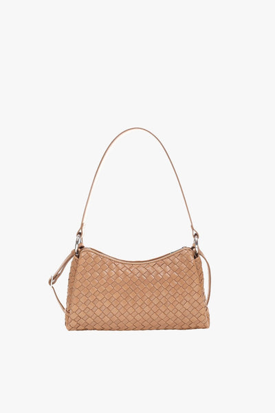 A small shoulder bag with a stylish woven design that is both practical and elegant. It features two detachable straps: a shorter one for shoulder or hand carry, and a longer adjustable strap for wearing cross-body. Both straps attach easily to the metal rings on the bag, allowing you to switch up your style effortlessly. Inside, there are three compartments, a zippered pocket, and an extra slot for small essentials.
