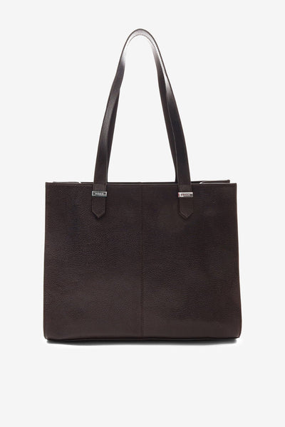 Geräumige Shopper-Tasche aus weichem Leder in schlichtem Design. Sie verfügt über ein großes Hauptfach mit Reißverschluss und gemustertem Futter. Ideal für Beruf und Alltag.