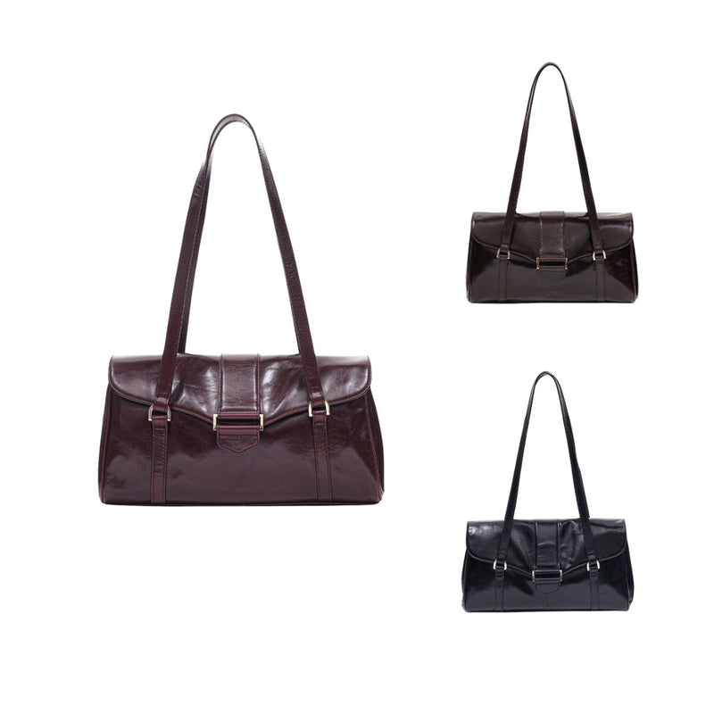 The bag is crafted from smooth Salerno calf leather with elegant gold details and a timeless design that lasts season after season.