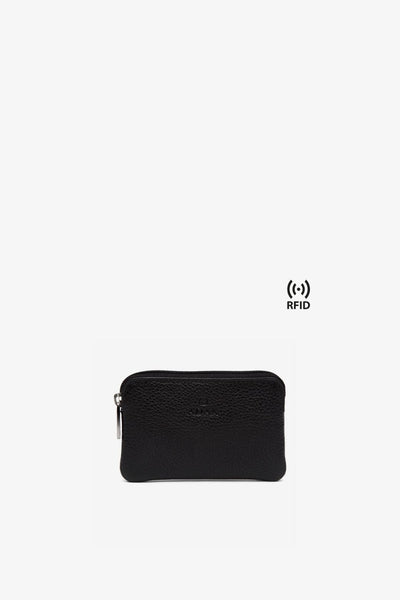 Practical key pouch with a zip closure and an interior chain with a key ring. It can also function as a small wallet with space for cash and cards. RFID protection keeps your cards safe from unauthorized scanning.