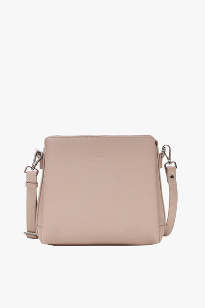 Stylish and practical crossbody bag with elegant silver-plated fittings. The bag features a top zipper closure and an adjustable shoulder strap that extends up to 140 cm. A back zipper pocket provides extra space for small essentials. Inside, the bag has three compartments, with the middle one including a zippered pocket and an open leather pocket for optimal organization.