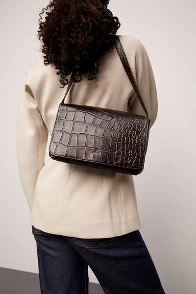 A stylish and practical shoulder bag from Adax, crafted from luxurious croc-embossed cow leather for an elegant and sophisticated look. The bag features a magnetic flap closure and a well-organized interior that keeps your everyday essentials neatly arranged.